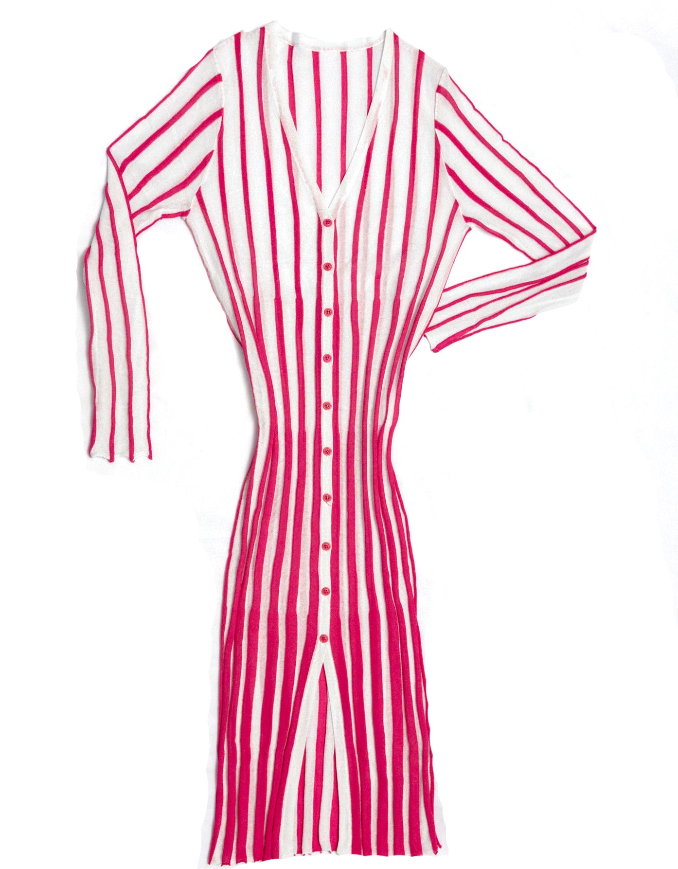 Button down summer dress or cardigan, you choose. Full length sleeves with detailed exposed cuffs and dress bottom. Breathable summer fabric with a light transparent effect. Low v-neck. Front button closure. Sheath silhouette. This beauty screams quality yet comfortability. No pockets. Ribbed details. Just below knee length. All Fluid Union Apparel pieces are based on comfortability, layering and genderless art and finished with European streetwear trends. Available in 1 colour.