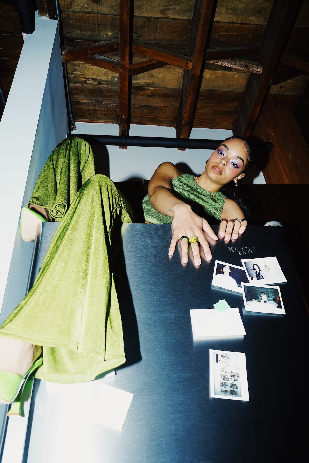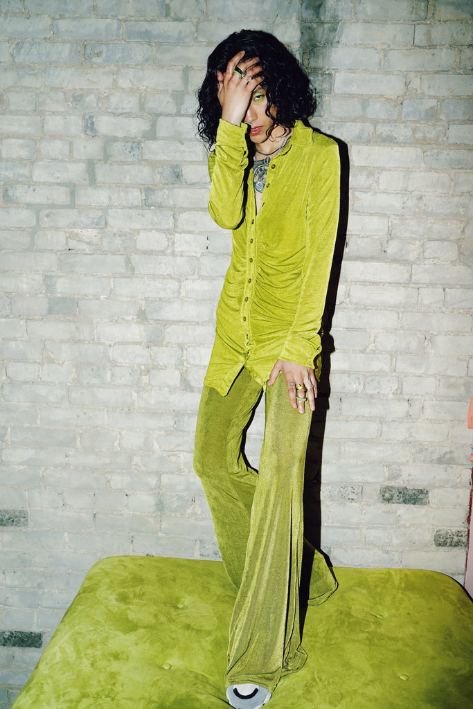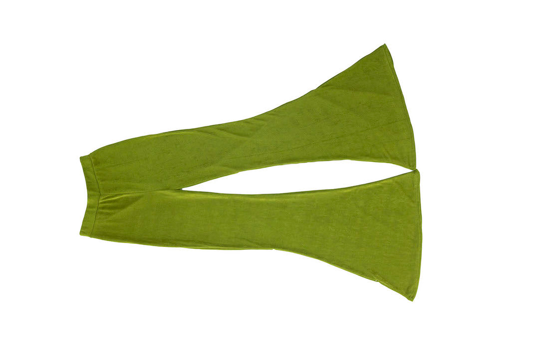 High waisted, wide leg, flare bottomed, green speckled summer trousers. Breathable, incredibly comfortable fabric. Full length leg. High waisted. No pockets. Pull up closure. Very close in fabric to our Ophelia dress. Super stretchy- great for all sizes. This pant has super long legs, therefore, we recommend wearing with some kind of lifted shoe, if your not naturally long legged. All Fluid Union Apparel pieces are based on comfortability, layering and genderless art and finished with European streetwear trends. Available in 1 colour.